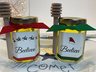 Customized labels are available (company name, family name) - minimum order for customized labels is 12 honey favors.